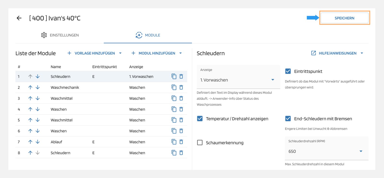 💾 Speichern Wenn Sie alle Module für Ihr Programm erstellt haben, können Sie es abspeichern, indem Sie auf die Schaltfläche "Speichern" klicken.