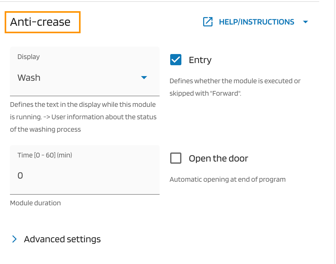 This module loosens the laundry at the end of the wash program, resulting in laundry that is as crease-free as possible.