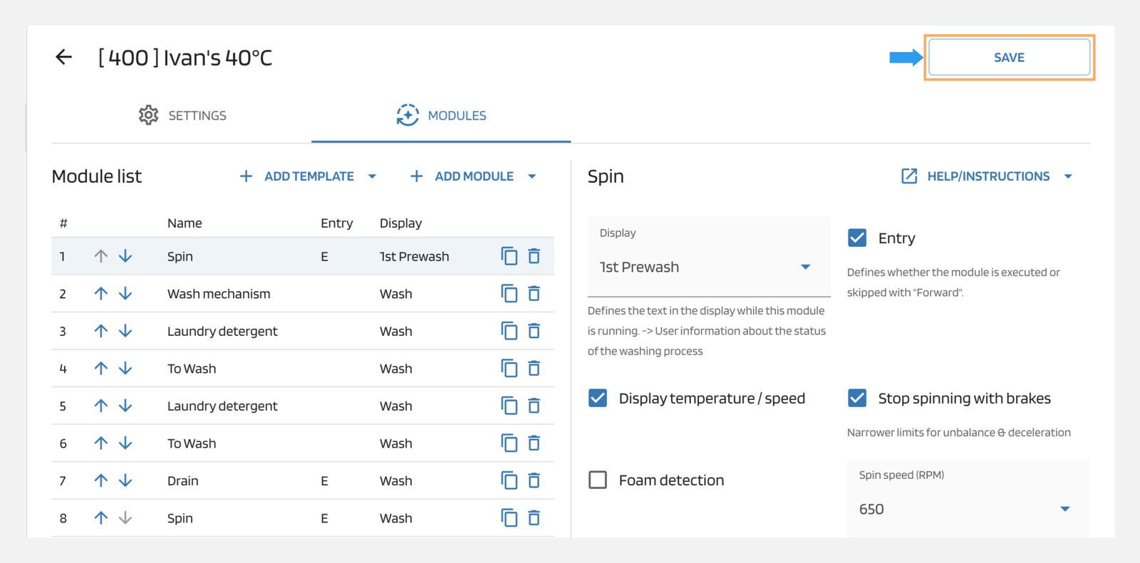 💾 Save Once you have created all the modules for your program, save it by clicking on the "Save" button.