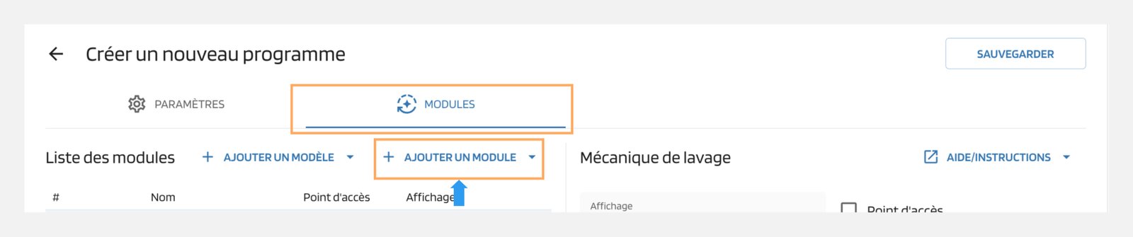Un programme de lavage peut contenir un maximum de 70 modules.