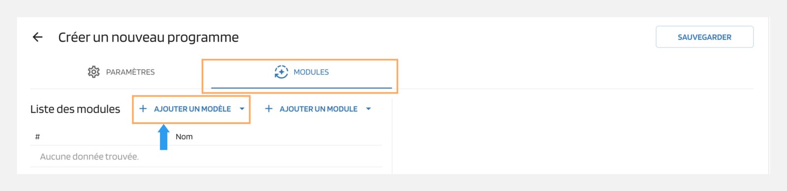 Sous l'onglet "Modules", vous pouvez ajouter des modèles pour votre programme individuel.
