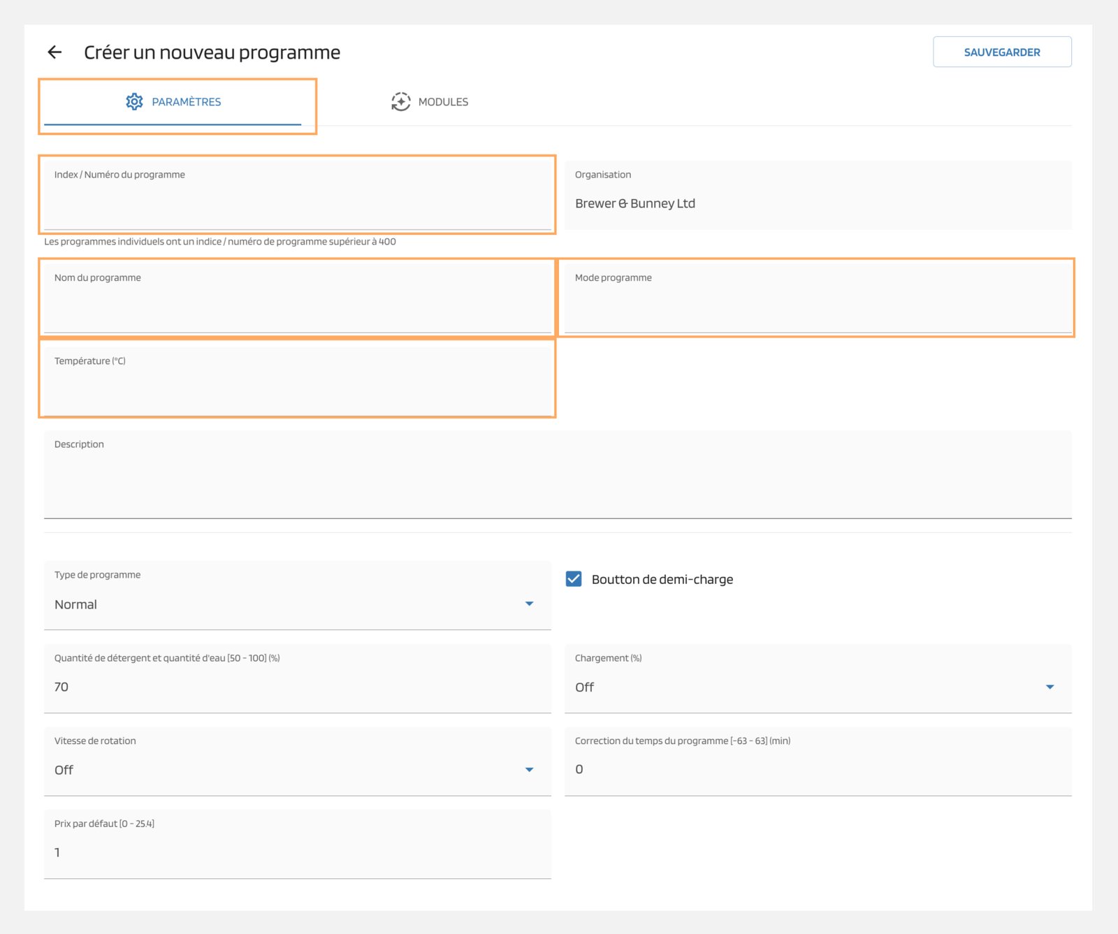 Dans l'onglet "Paramètres", vous pouvez modifier divers paramètres lors de la création ou de l'édition d'un programme individuel.