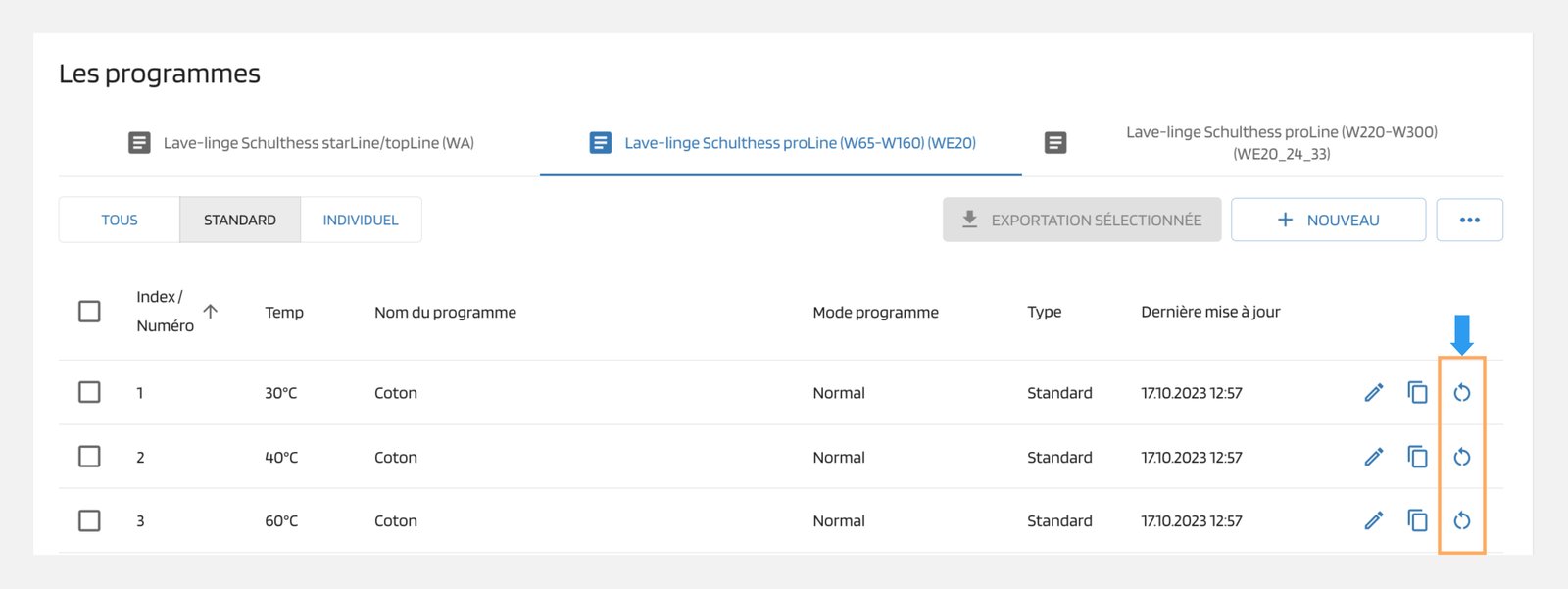 Pour réinitialiser les paramètres par défaut des programmes standard, sélectionnez le programme dans la liste et cliquez sur l'icône de réinitialisation.