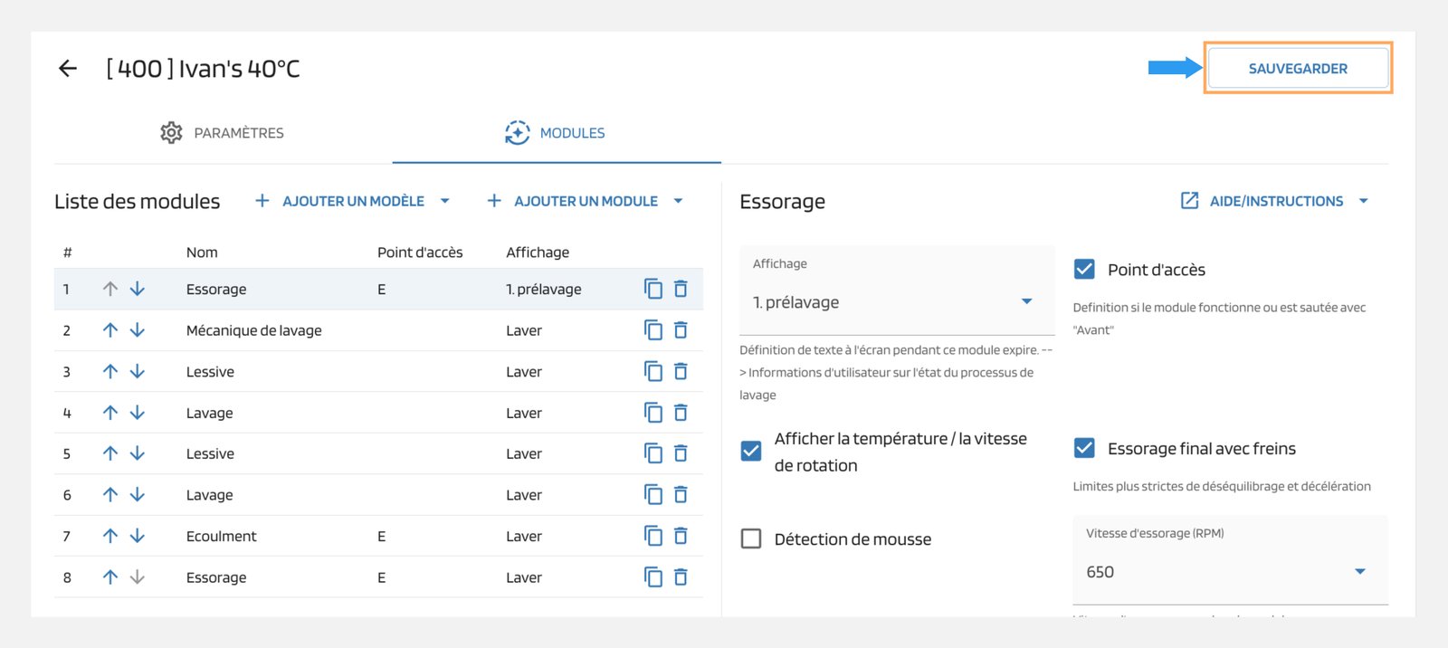 💾 Sauvegarder Une fois que vous avez créé tous les modules de votre programme, sauvegardez-le en cliquant sur le bouton " Sauvegarder ".